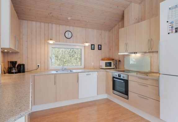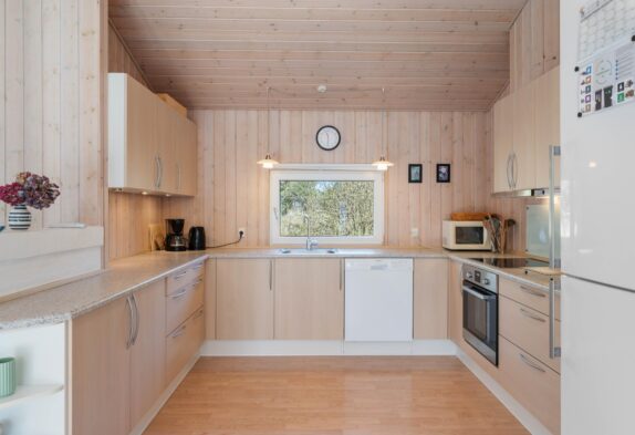 Das Ferienhaus in Bjerregård liegt auf einem 1250 qm großen Naturgrundstück, das teilweise von Büschen und Bäumen gesäumt ist und euch somit sowohl Privatsphäre als auch Windschutz bietet. Genieße sonnige Tage auf der Terrasse, die teils überdacht und vollständig umzäunt ist – besonderes praktisch, wenn du mit kleinen Kindern oder Hunden reist.