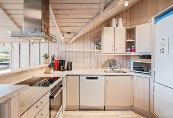 Die Küche ist das “Herz des Hauses” und offen mit dem Wohnzimmer kombiniert. Die Küche ist äusserst gut ausgestattet, u.a. mit Geschirrspüler, Mikrowelle und 2 Gefrierschränke (65 L und 197 L). Die Eigentümer liegen großen Wert auf hochwertige Küchenutensilien – jeder Hobbykoch wird sich hier freuen.