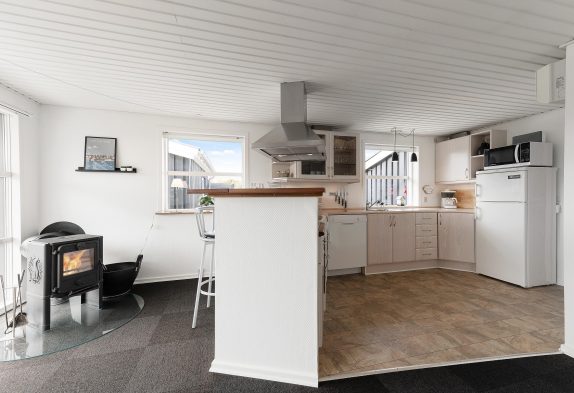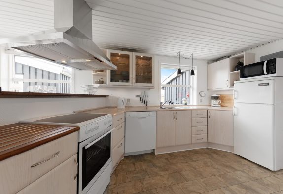 In der großzügigen und offen gestalteten Küche findet ihr eine vollzählige Ausstattung vor, bei der natürlich auch ein Geschirrspüler nicht fehlen darf. Hier könnt ihr einen Kochabend veranstalten und vielleicht auch mal ein klassisch dänisches Rezept ausprobieren.