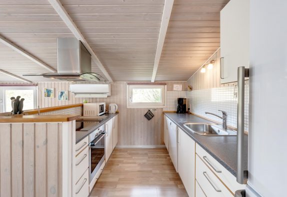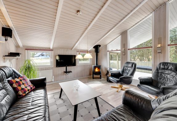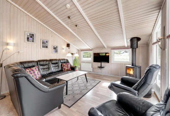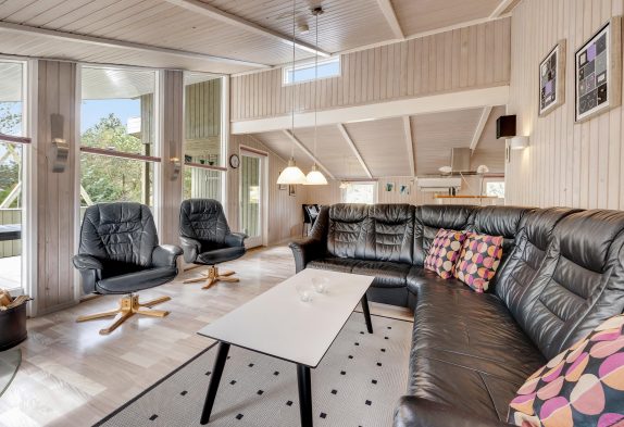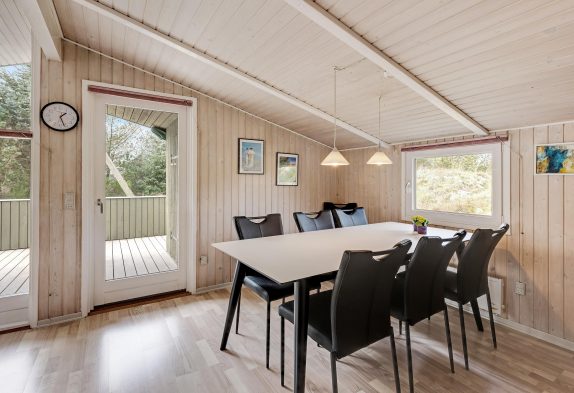 Dieses gepflegte Sommerhaus liegt auf einen schönem Naturgrundstück Im Bjerregårdsvej 25. Das Ferienhaus hat Platz für 8 Personen, und die praktische Einrichtung bietet sowohl Bad und Gästetoilette. Das Ferienhaus ist gemütlich und praktische eingerichtet und bietet bequeme Möbel, einen Geschirrspüler, Waschmaschine und Trockner. Draussen befindet sich eine sehr schöne geschlossene Terrasse, die sich um das Haus herum erstreckt und viele Sitzecken bietet.
