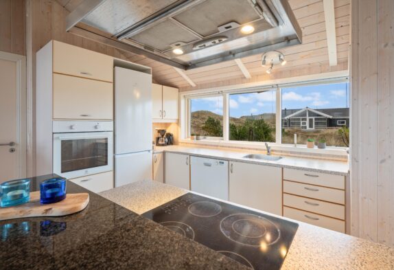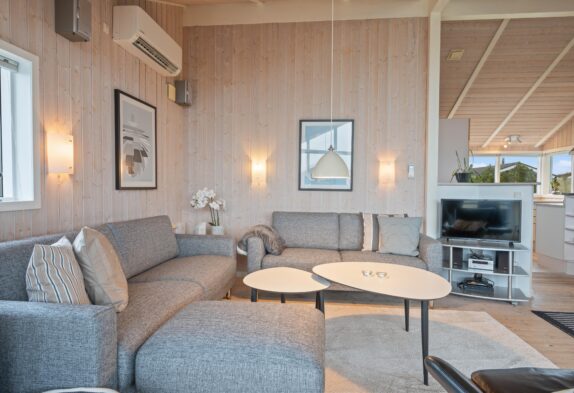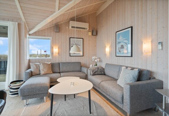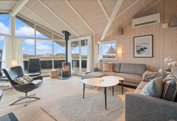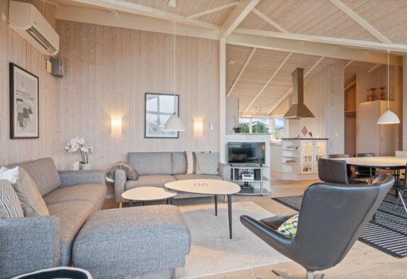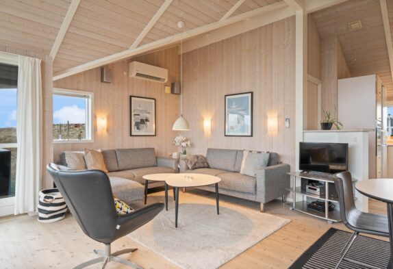 Auf einem 1.249 m² großen Naturgrundstück liegt das Ferienhaus in Bjerregårdsvej 298. Ein gepflegtes Ferienhaus mit Platz für sechs Feriengäste, bei dem auch 2 Hunde willkommen sind. Die Einrichtung ist hell und geschmackvoll, mit hellen Holztönen sowie einer fantastischen Fensterfront im Wohnzimmer.