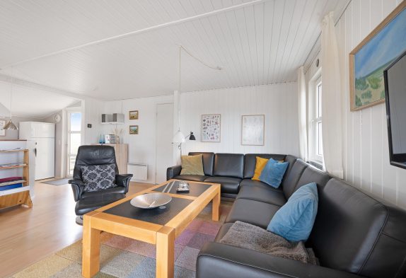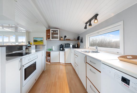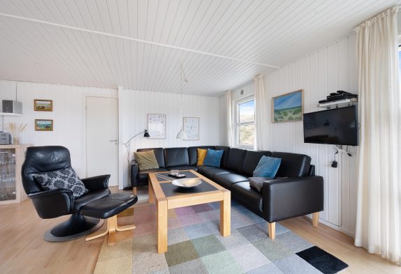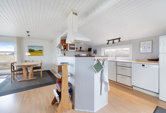 Dieses Ferienhaus liegt auf einem hügeligen Naturgrundstück in Bjerregård. Das Gebiet ist für die tolle Dünenlandschaft und den kurzen Abstand zur Nordsee bekannt.