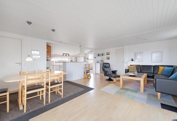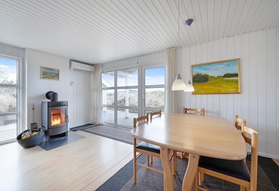 Das Ferienhaus ist hell und geräumig, so dass es sich die ganze Familie im Wohnbereich vor dem Kaminofen gemütlich machen kann. Da die Küche auch offen zum Wohnbereich gestaltet wurde, ist man auch beim Essen zubereiten zusammen.