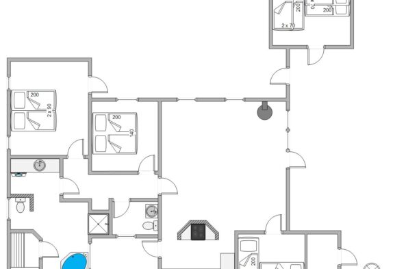 Das Ferienhaus bietet Platz für sechs Personen in drei Schlafzimmern, von denen zwei mit einem Doppelbett ausgestattet sind. Das letzte Zimmer ist mit einem Einzelbett ausgestattet, und es gibt auch ein Etagenbett, das von einem Kind benutzt werden kann. Außerdem gibt es einen schönen Anbau mit zwei Betten, so dass ihr euch nach Belieben einrichten können.