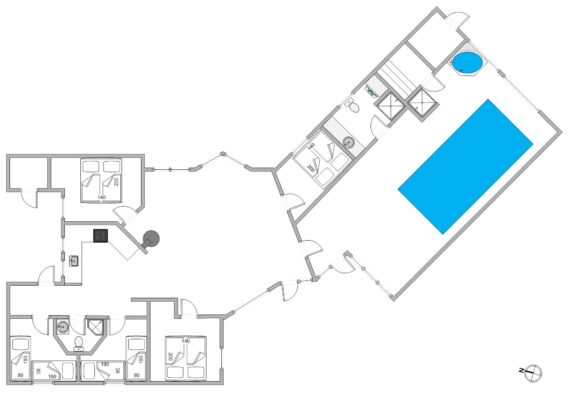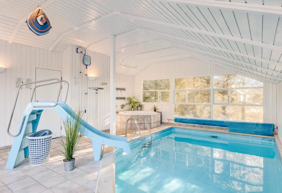 Beide Badezimmer sind mit Fußbodenheizung und zweckmäßig mit einer Dusche ausgestattet. Nachdem die Betten in den 5 zur Verfügung stehenden Schlafzimmern verteilt worden sind, heißt es – ab in den Pool. Im 16 Quadratmeter großen Swimmingpool könnt ihr euch austoben oder genießt die Urlaubszeit im Whirlpool oder in der Sauna.