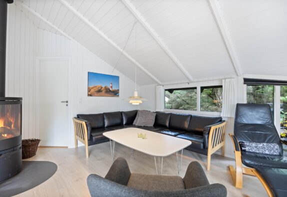 Der großartige Sandstrand, der nur 800 Meter vom Ferienhaus entfernt ist, lädt zum täglichen Spaziergang entlang des Wassers ein. Hier könnt ihr die raue und einzigartige Natur genießen. Nach Stunden am Wasser oder in der umliegenden Heide könnt ihr euch auf die Wärme am Holzofen freuen.