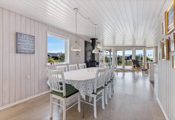 Helles und geräumiges Ferienhaus, in dem eine 8-köpfige – oder zwei kleinere Familien einen erholsamen Urlaub verbringen können. Der Strand ist auch mit kleinen Kindern zu Fuß erreichbar und von der Terrasse ist das Rauschen des Meeres zu hören. Die Sauna und der Whirlpool laden zum entspannen ein.