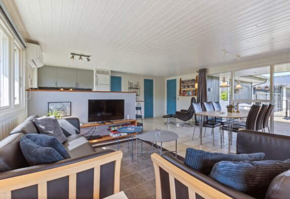 Das Ferienhaus in Rauhesvej 66 verfügt über eine gemütliche Wohnfläche von 77 m². Der offene Wohnbereich mit Kaminofen sorgt für eine warme Atmosphäre und ist der perfekte Ort für gemeinsame Stunden. Hier könnt ihr euch auf dem Sofa entspannen, während das Feuer knistert und die Parabolantenne für Unterhaltung sorgt. Die angrenzende Küche ist gut ausgestattet und verfügt über eine Spülmaschine, sodass ihr euch nach dem Essen nicht um den Abwasch kümmern müsst.
