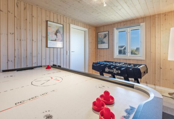 Mit Kaminofen, Wärmepumpe und einer geschlossenen Terrasse ist das Ferienhaus ideal für jede Jahreszeit. Auch euer vierbeiniger Freund ist herzlich willkommen – 1 Hund darf mitreisen. Für Abwechslung an Regentagen sorgt zudem der Aktivitätsraum mit Kicker, Dartscheibe und Airhockey.