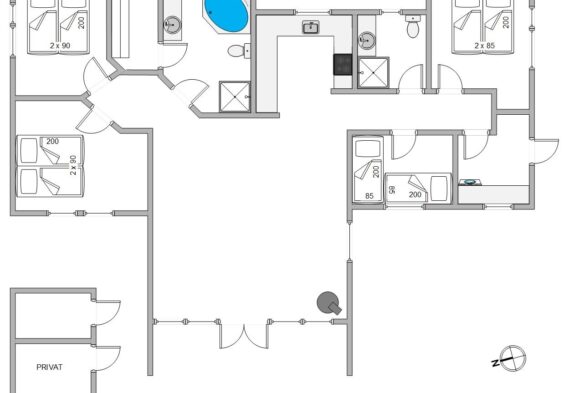 Durch die Raumaufteilung eignet sich das Haus besonders gut für 2 kleinere Familien, da jeder Schlaftrakt über ein eigenes Badezimmer verfügt. Der große Wohnbereich lädt zum entspannen und beisammensein ein.