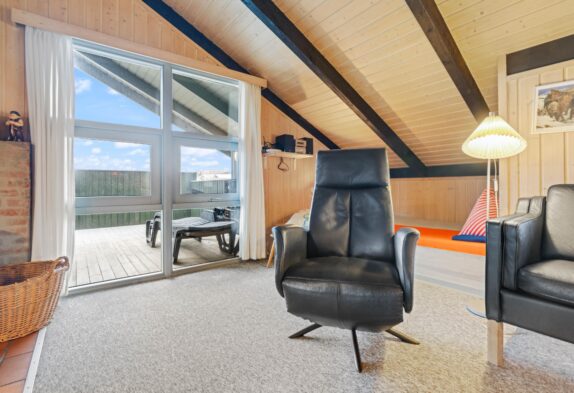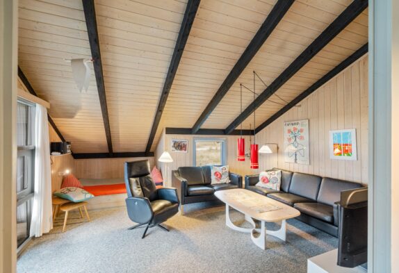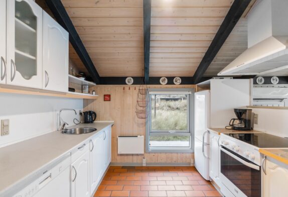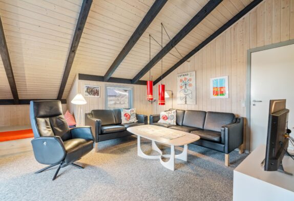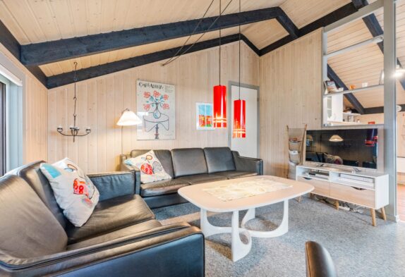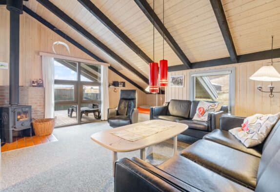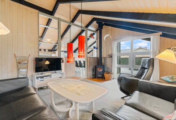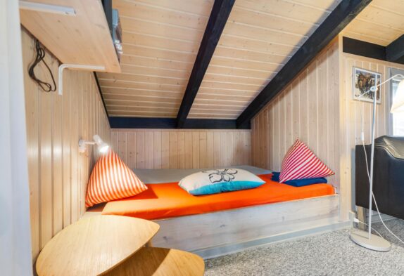 Das Ferienhaus ist gut gepflegt und mit bequemen Möbeln eingerichtet. Wohnzimmer und Küche sind offen miteinander verbunden und die Dachschrägen schaffen ein gemütliches Raumgefühl. Im Wohnbereich gibt es einen schönen Kaminofen, der das Ferienhaus schnell aufwärmen kann. Lehnt euch auf dem Sofa zurück, lest ein gutes Buch und spürt die Wärme. Im Wohnzimmer gibt es eine wunderbare Alkoven-Ecke, die als Entspannungsbereich genutzt werden kann. Für energiesparendes Heizen steht euch zudem eine Wärmepumpe zur Verfügung.