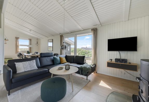 Ein helles und gemütliches Ferienhaus in tolle Lage auf einem Naturgrund dicht am Bjerregård Strand. Das Haus wurde 2021 durchgreifend renoviert und ist schön mit komfortablen Möbeln und Betten eingerichtet. Auf den vorhandenen Terrassen findest du immer einen windgeschützten Platz.