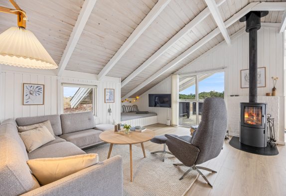 Das Ferienhaus wurde 1979 erbaut und eignet sich für Urlaubstage mit Familie oder Freunden. Auch euer Hund ist willkommen. Im Wohnbereich sorgen helle Holzwände, sichtbare Balken und große Fenster für ein angenehmes Raumgefühl und einen Blick auf die Terrasse. Ein Alkoven bietet den Kindern die Möglichkeit zum Spielen oder Ausruhen. An kühleren Tagen schafft der Kamin wohlige Wärme und eine gemütliche Atmosphäre.