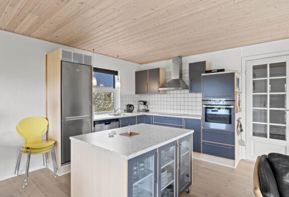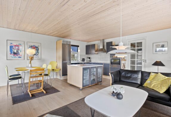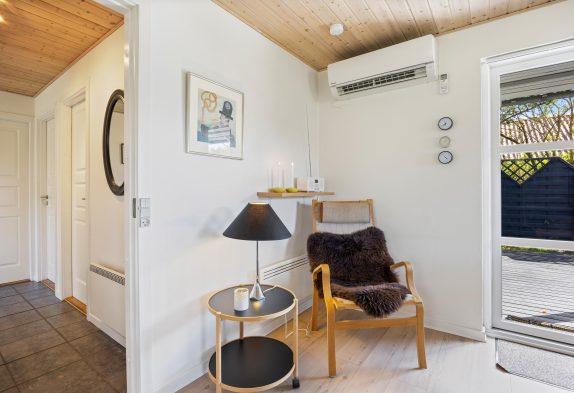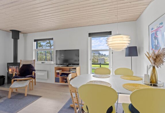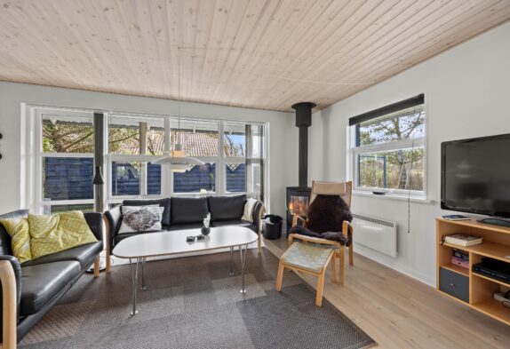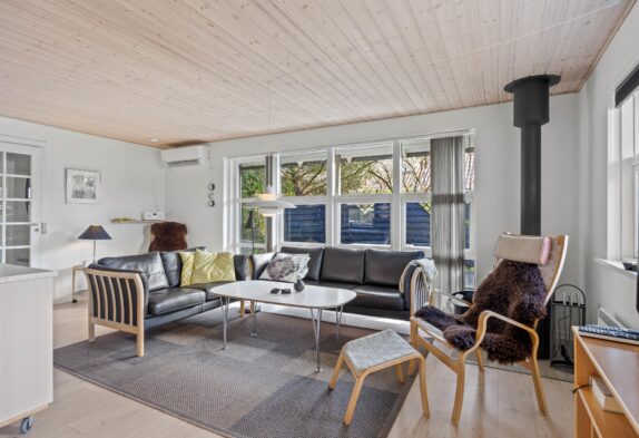 Im Heidesvej 10 empfängt euch das helle und freundliche Interieur des Ferienhauses, sobald ihre es betretet. Die großen Fenster und Glastüren mit Zugang zur Terrasse, sorgen für viel natürliches Licht im Wohnbereich. Hier können ihr es euch auf dem Sofa gemütlich machen und die Wärme des Holzofens genießen, während ihr es euch mit einer Tasse heißer Schokolade gemütlich macht. Eine energiesparende Wärmepumpe hilft, den Verbrauch für Wärme niedrig zu halten.