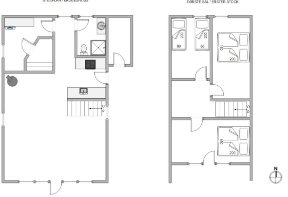 Alle Schlafzimmer sind mit guten Federkernmatratzen ausgestattet. Im Erdgeschoss gibt es ein gutes Badezimmer mit Dusche und Fußbodenheizung. In einem anderen Raum befinden sich der Zugang zur Sauna.