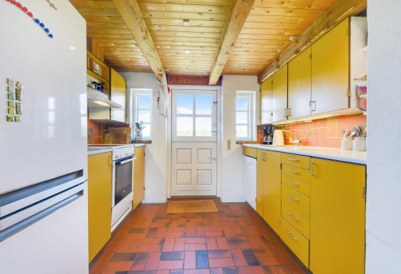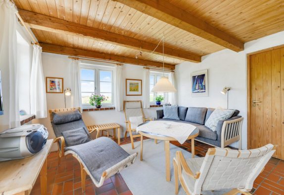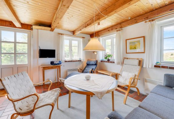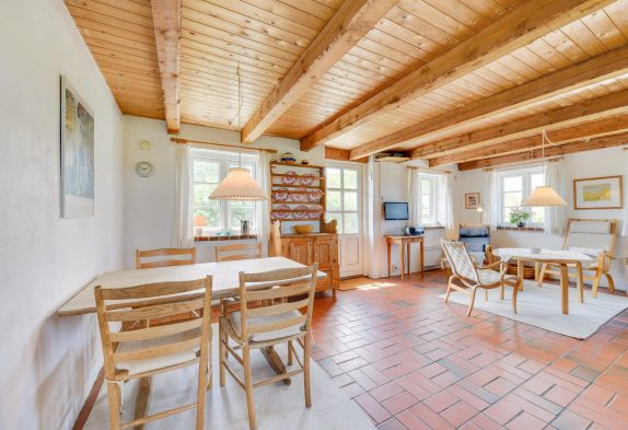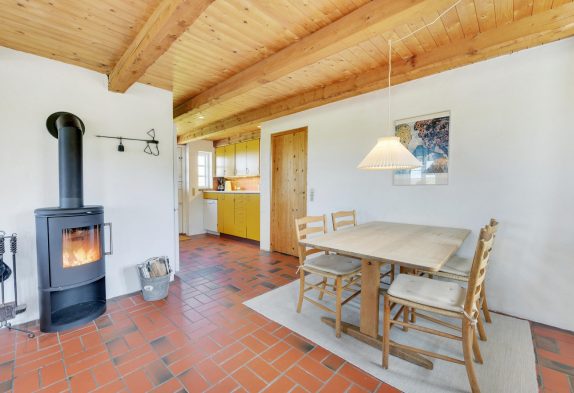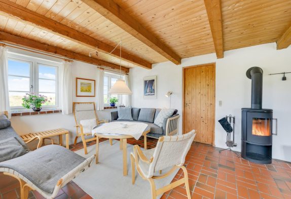 Dieses gemütliche Ferienhaus aus Backstein ist ideal für entspannte Ferien, evtl. mit Hund, geeignet. Das Wohnzimmer ist gemütlich und rustikal mit sichtbaren Deckenbalken und schönem Kaminofen eingerichtet und vermittelt so ein echtes, traditionelles “Sommerhausfeeling”. Auch eine energiesparende Wärmepumpe steht euch zum Heizen zur Verfügung.
