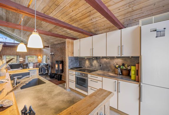 Schönes Ferienhaus, das auf einem großem Naturgrundstück liegt. Das Haus besitzt mehrere Terrassen, auf denen du den Ausblick auf die Natur und die Sonne genießen kannst. Die Ausstattung der Küche lässt keine Wünsche offen und der Geschirrspüler übernimmt nach dem Essen gerne den Abwasch für euch.