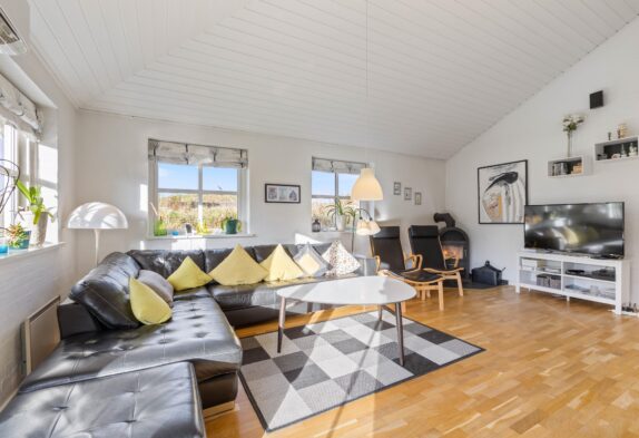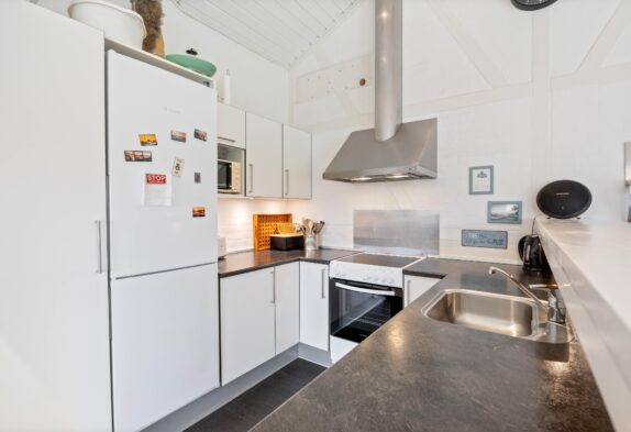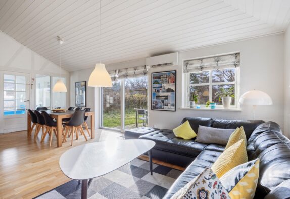 Die helle und gemütliche Einrichtung wurde farblich aufeinander abgestimmt, so dass ihr euch auf Anhieb wie zuhause fühlt und die Zeit mit euren Liebsten in vollen Zügen genießen könnt. Die hohen Decken im Küchen- und Wohnbereich lassen den Raum größer wirken und die vielen Fenster sorgen für viel Licht und einen schönen Blick auf das Grundstück.