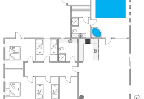 Außerdem sind noch zwei Bäder und vier Schlafräume vorhanden, wenn ihr also zwei Familien seid die ein Poolhaus suchen, dann ist dieses Ferienhaus genau das Richtige für euch.