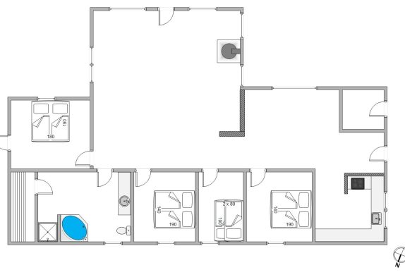 So entspannt werdet ihr sicherlich auch gut schlafen. Im Ferienhaus gibt es drei gut Schlafzimmer mit Doppelbetten und ein Schlafzimmer mit einem Hochbett. Das Ferienhaus könnt ihr mit der energiesparenden Wärmepumpe schnell aufwärmen und im Badezimmer gibt es zusätzlich noch eine Fußbodenheizung.