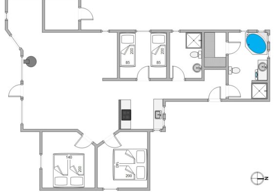 Insgesamt zwei Schlafzimmer mit bequemen Doppelbetten und ein Schlafzimmer mit zwei Einzelbetten stehen euch für eine erholsame Nachtruhe zur Verfügung. Es gibt zudem zwei Badezimmer mit Dusche und Fußbodenheizung in diesem praktisch ausgestatteten Ferienhaus. So könnt ihr euch gut aufteilen. Im größeren Bad findet ihr mit Sauna und Whirlpool eure eigene Wellnessabteilung. Hier könnt ihr im warmen Wasser oder bei einem Saunagang die Seele baumeln lassen. Um stets für frische Wäsche sorgen zu können findet ihr hier zudem eine Waschmaschine.