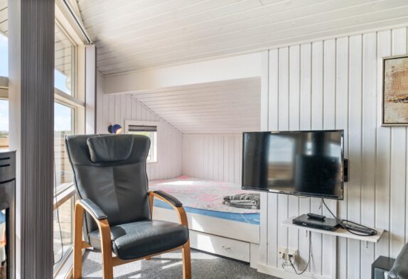 Das Herzstück dieses schönen Ferienhauses bildet der großzügige Wohnraum, der Dank der Fensterfront und dem hellen Holz, für eine Wohlfühlatmosphäre sorgt. Hier könnt ihr euch mit euren Kindern aufs Sofa oder in den Alkoven kuscheln und gemeinsam einen DVD-Abend verbringen. Oder ihr genießt eine frisch gebrühte Tasse Kaffee vorm Kaminfeuer und lasst den Blick in die euch umgebende Natur schweifen.