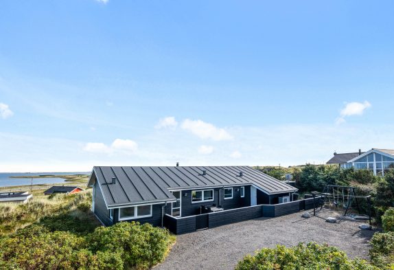 Das 2005 qm große Dünengrundstück bietet reichlich Platz zur Entspannung. Hier könnt ihr auf der teils überdachten, geschlossenen Terrasse die Sonne auf bequemen Gartenmöbeln und Sonnenliegen genießen. Der Grill steht bereit für kulinarische Abende unter freiem Himmel, während die Kinder sich im Sandkasten oder auf der Schaukel austoben. Der Panoramablick in Richtung Ringkøbing Fjord von der Terrasse aus rundet das perfekte Urlaubsgefühl ab.