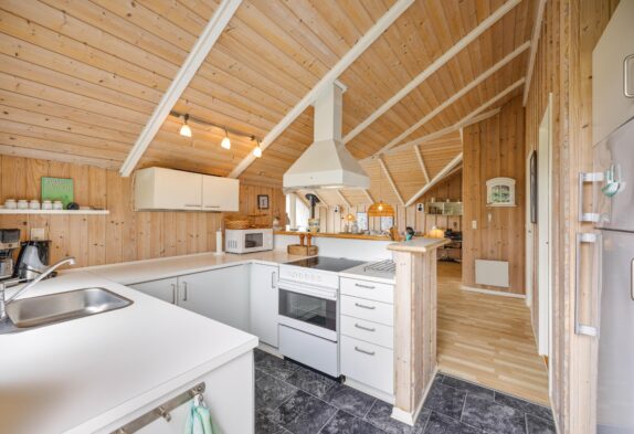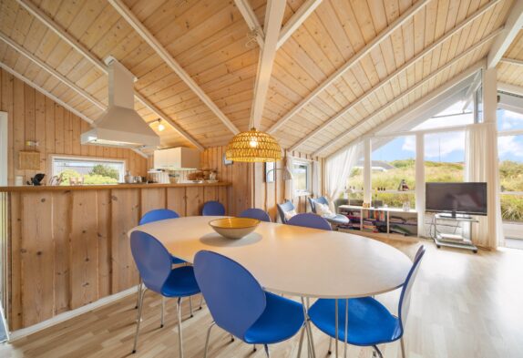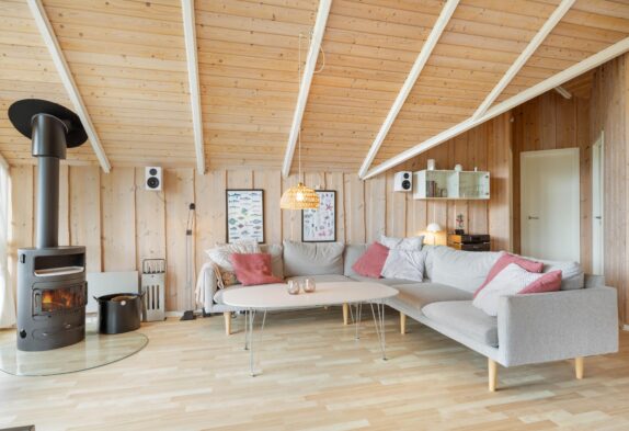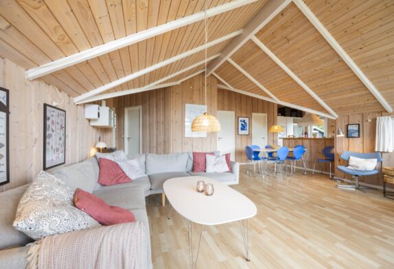 Die helle und gemütliche Einrichtung, sowie die hellen und holzbekleideten Decken, Wände und Böden verleihem dem Haus den richtigen Ferienhauscharme. Auch die Ausstattung lässt auch keine Wünsche offen, da sowohl eine Sauna als auch ein Whirlpool im Haus vorhanden ist. Nach einem langen Tag an der frische Luft könnt ihr euch hier wieder aufwärmen und eure Batterien wieder aufladen oder aber ihr macht es euch auf dem großen Ecksofa gemütlich, welches ausreichend Platz bietet um sich zusammen einen Film auf dem hauseigenen Chrome Cast anzuschauen.