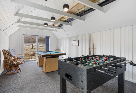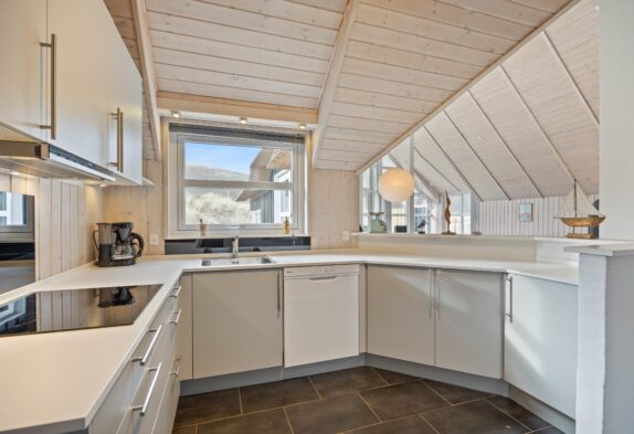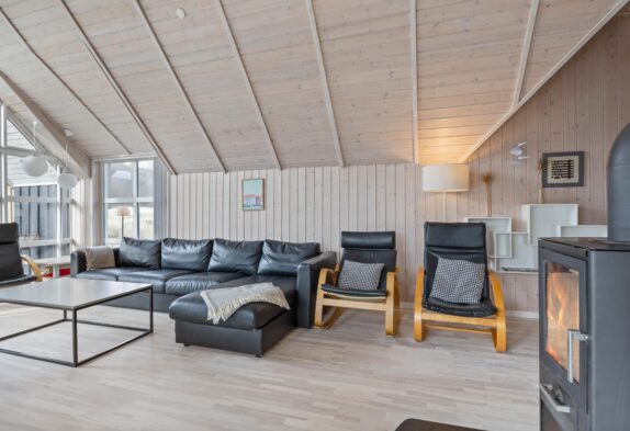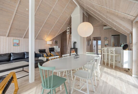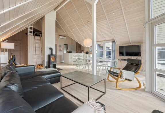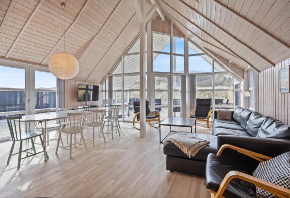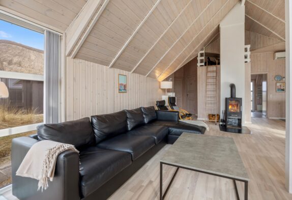Dieses Ferienhaus ist sehr hell und gemütlich eingerichtet. Durch die große Fensterpartie im Wohnbereich kann man das ganze Jahr über die schöne Aussicht auf die Dünen genießen. Der Wohnbereich ist hell und hat hohe Decken.