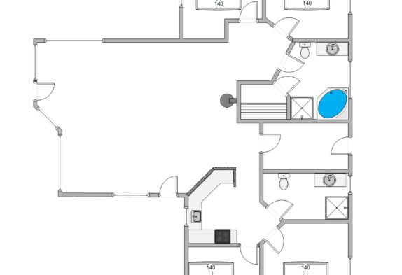 Das Haus verfügt über 4 Schlafzimmer sowie einer Küche, die mit dem Wohnbereich und der Essecke verbunden ist. Die 2 schicken Badezimmer sind geschmackvoll eingerichtet und die Sauna oder der Whirlpool laden zum entspannen ein.