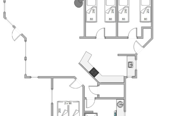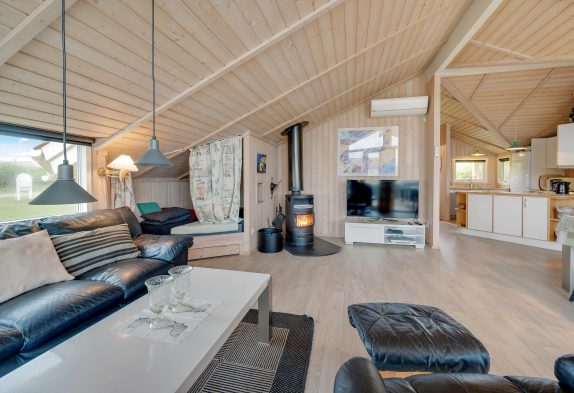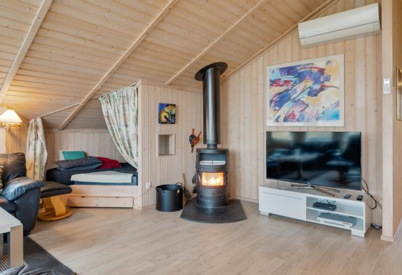 Es hat ein gemütliches Wohnzimmer in dem du mit den Kindern spielen, Filme gucken oder dich einfach im Alkoven entspannen kannst. Und an den kühleren Tagen kannst du den Kaminofen anmachen, der auch für eine gemütliche Stimmung sorgt.
