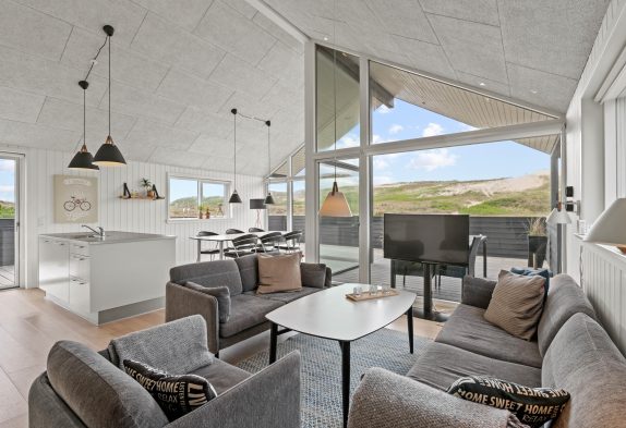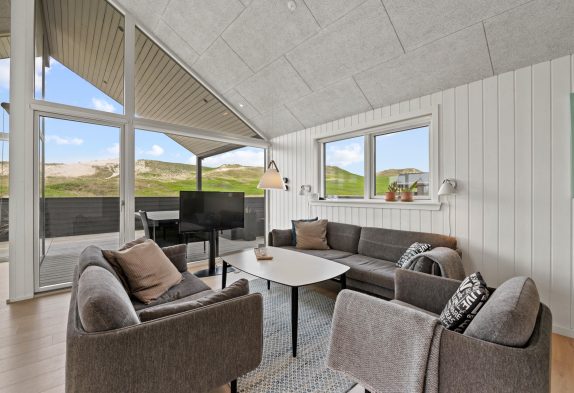 Ein modernes und einladendes Ferienhaus in fantastischer Lage in der 1. Dünenreihe im beliebten Feriengebiet Årgab. Das Haus ist gut aufgeteilt und liegt optimal auf dem Grundstück platziert – sowohl was Sonne und Windschutz betrifft. Das Haus bietet eine tolle Terrasse, von der ein großer Teil geschlossen ist. Und Richtung Südwesten ist sie außerdem teilweise überdacht.