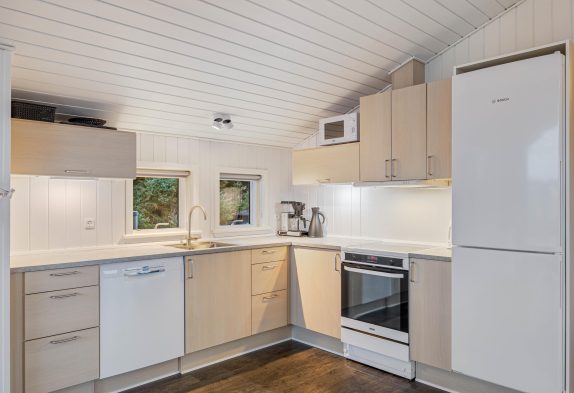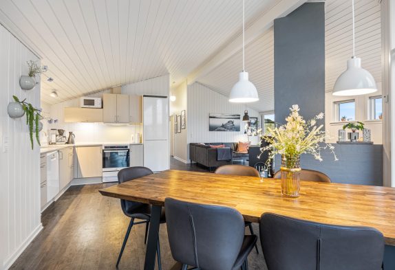 Die Küche eures Ferienhauses ist praktisch ausgestattet; auch mit Haushaltgeräten, und steht in offener Verbindung mit dem schönen Wohnzimmer, wo ihr euch vor dem Kaminofen entspannen könnt oder ein gemütliches Mittagsessen mit Freunden genießen könnt. Auch die energiesparende Wärmepumpe sorgt für eine angenehme Temperatur.