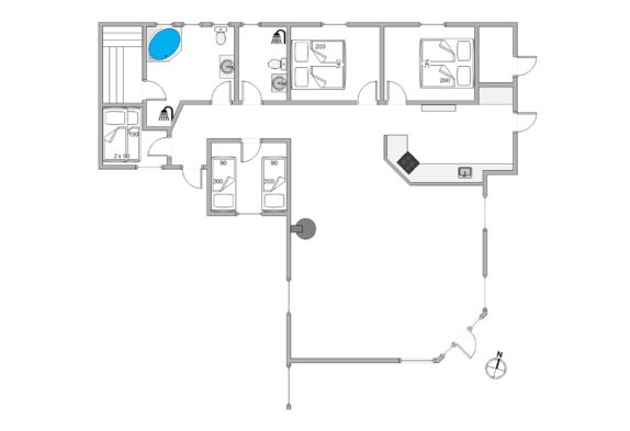 Dazu gibt es auch eine Sauna und einen Whirlpool, wo du dich nach einem aktiven Tag richtig entspannen kannst. Daraufhin erwarten euch vier gemütliche Schlafzimmer mit Laminatboden, welche mit zwei Doppelbetten und drei Einzelbetten ausgestattet.