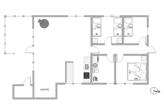 Sehr gemütliches Ferienhaus in dem bis zu 6 Personen Platz haben, und auch eure Hunde dürfen mitgebracht werden. Es sind drei Schlafzimmer vorhanden und im Wohnbereich gibt es noch einen Akloven, der von Kleinkindern gerne als “Höle” genutzt wird.