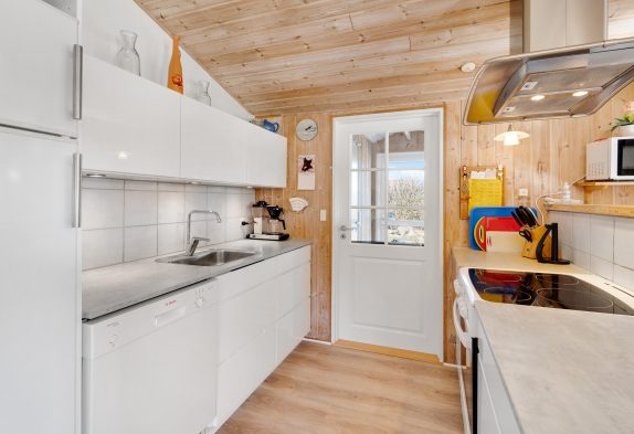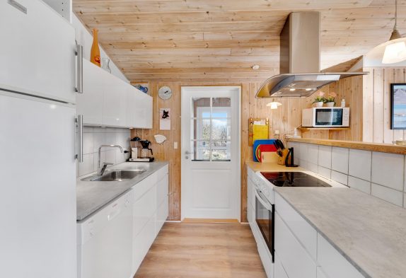 Die Küche ist modern und hell und bietet mit der Kühlkombination, der Mikrowelle und dem Geschirrspüler allen Komfort den ihr in einem Sommerhaus benötigt. Eure Lieblingsspeisen könnt ihr hier praktisch zubereiten.