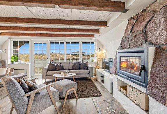 Ein echt schönes und geschmackvoll eingeichtetes Ferienhaus mit erstem Stock. Es wurde 2021 gründlich und geschmackvoll renoviert. Die Küche ist offen mit dem gemütlichen Wohnzimmer verbunden. Im Wohnzimmer steht ein sehr schöner und eingebauter Holzofen, der sowohl Gemütlichkeit als auch angenehme Wärme verbreitet. Bei Bedarf kann die energiesparende Wärmepumpe eingeschaltet werden.