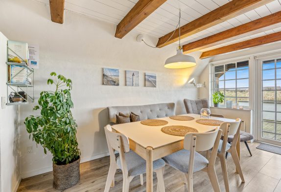 Das Haus besitzt 2 schöne Holzterrassen. Eine teilweise überdachte und teilweise abgeschirmte Terrasse nach Süden ausgerichtet, und eine windgeschützte Terrasse Richtung Osten. Von beiden Terrassen gibt es eine hervorragende Aussicht auf die Dünenlandschaft. Das Meer und der Strand sind nur 200 m vom Ferienhaus entfernt und es bietet gute Möglichkeiten für viele schöne Spaziergänge.