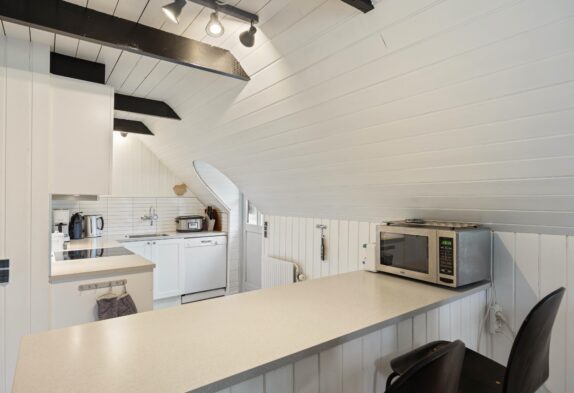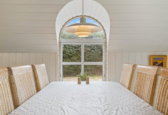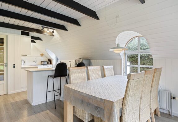 Freut euch auf einen entspannten Urlaub im dänischen Ferienhaus-Klassiker: Strahlend weiß mit typisch nordischem Reetdach wartet dieses Urlaubsdomizil in Haurvig auf seine Gäste.