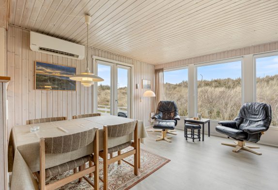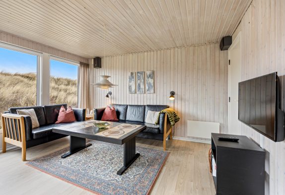 Dicht am Fjord und Meer, auf ungestörtem Naturgrund am Rande von Hvide Sande, liegt dieses schöne Ferienhaus mit Whirlpool und Sauna im Holmsland Klitvej 9. Das Ferienhaus ist in einem gepflegten Zustand und eine Familie mit bis zu 6 Personen kann die Ferien hier in vollen Zügen genießen.
