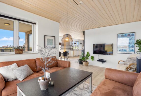 Die Küche ist bestens ausgestattet mit u.a. Mikrowelle, Geschirrspüler und Gefrierschrank (30L). Das gemütliche Wohnzimmer ist nach Osten gerichtet. Ihr könnt hier die Aussicht genießen oder einen Film auf dem Flachbildschirm-TV sehen.