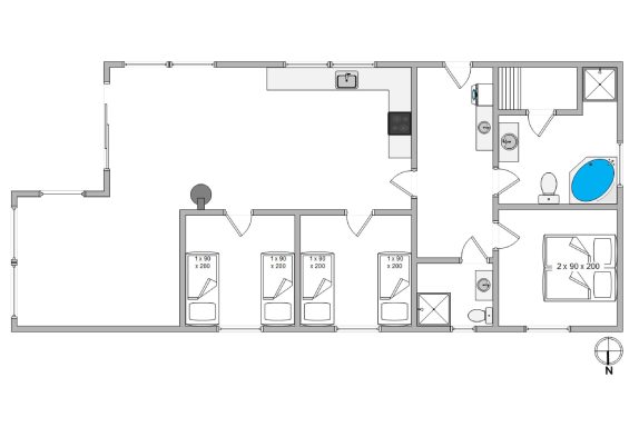 Das Haus verfügt über 3 Schlafzimmer, alle mit Teppichboden. Ein Zimmer ist mit Doppelbett und Flachbildschirm-TV eingerichtet. Die übrigen Zimmer haben beide 2 Einzellbetten. Die zwei schönen Badezimmer im Haus sind beide mit Fußbodenheizung und Duschkabine eingerichtet.