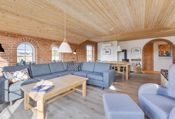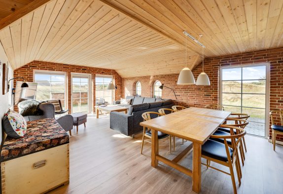 Ein großes und schönes Ferienhaus, das auf einem Naturgrundstück liegt. Das Steinhaus hat ein Reetdach und ist zentral im Lyngvejen gelegen. Klegod liegt zwischen Hvide Sande und Søndervig nahe am Strand. Ein schönes Haus für euch und eueren Hund.