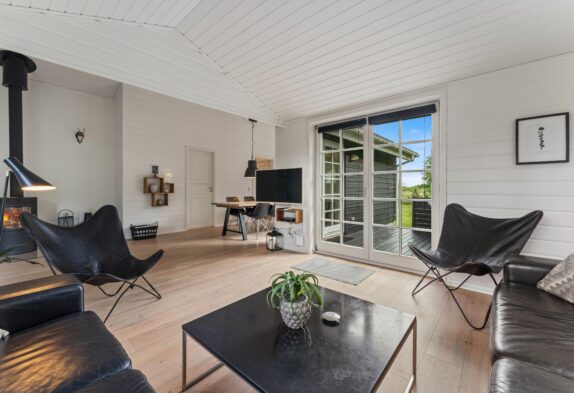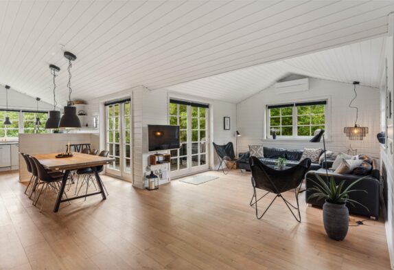 Im Inneren zeichnet sich das Haus durch seinen hellen und einladenden Charakter aus. Die hohen Decken sowohl im Wohn- als auch im Schlafzimmer geben ein tolles Raumgefühl. Das schöne Ferienhaus bietet nicht nur viel Platz, sondern auch einen Whirlpool und eine Sauna. Beste Voraussetzungen für einen erholsamen und gemütlichen Urlaub.