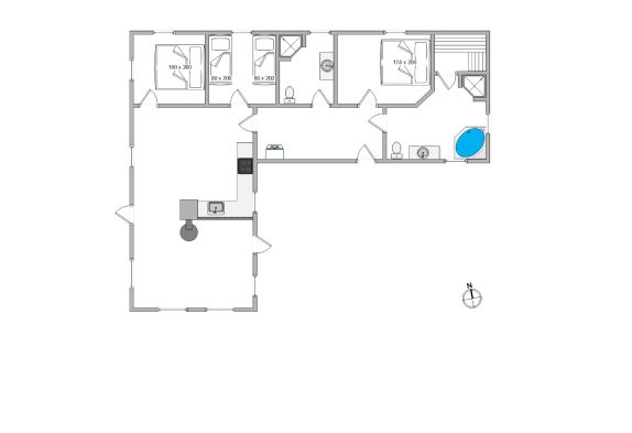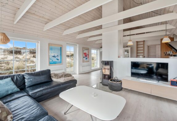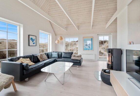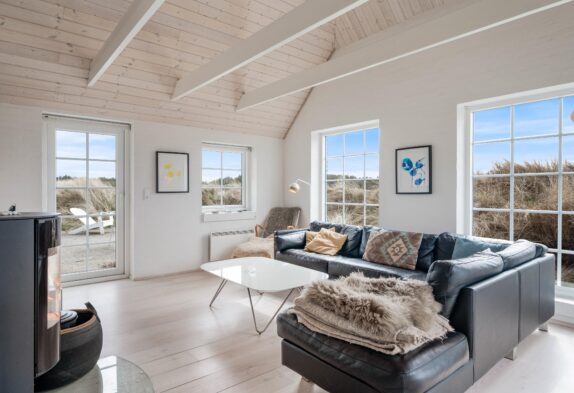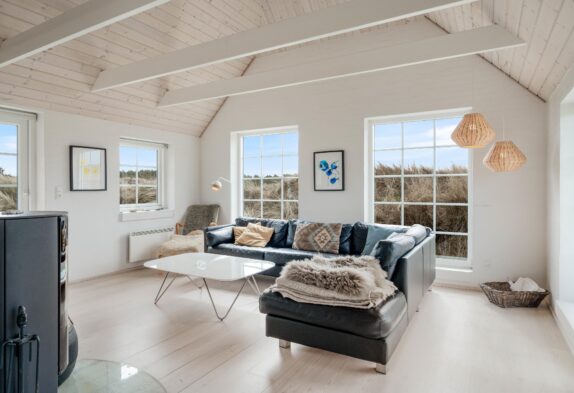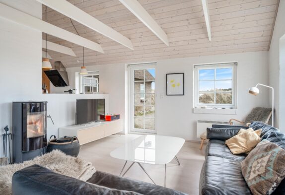 Das Ferienhaus bietet Platz für 6 Personen in den 3 guten Schlafzimmern. 2 der Schlafzimmer sind mit Doppelbett und das dritte Zimmer ist mit 2 Einzelbetten ausgestattet. Alle 3 Zimmer sind mit Kleiderschränke und Teppichboden eingerichtet. Die 2 schönen Badezimmer sind hübsch eingerichtet und mit Duschkabine und Fußbodenheizung ausgestattet. Das größere Badezimmer bietet außerdem einen Whirlpool für 2 Personen sowie eine schöne Sauna. Die Küche ist offen mit dem Ess- und Wohnbereich des Hauses verbunden und u.a. mit Geschirrspülmaschine, Mikrowelle und Kühl/Gefrierschrank ausgestattet. Im Wohnzimmer steht ein traditioneller Kaminofen im Mittelpunkt und sorgt für wohlige Wärme. Setzt euch auf das Sofa und genießt ein Glas Wein vor dem knisternen Feuer, oder macht es euch mit einem Kartenspiel am Esstisch gemütlich, während das Feuer im Kaminofen sowohl für Wärme als auch Gemütlichkeit sorgt. Im geräumigen Wohnzimmer gibt es eine firsthohe Decke und viel Lichteinfall durch die großen Fenster.