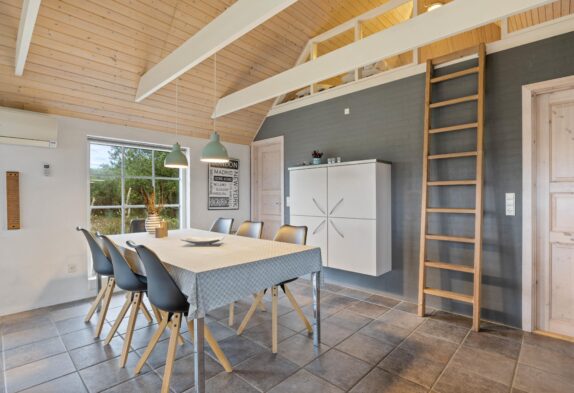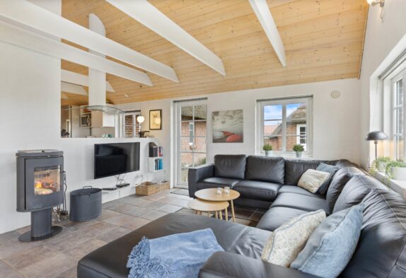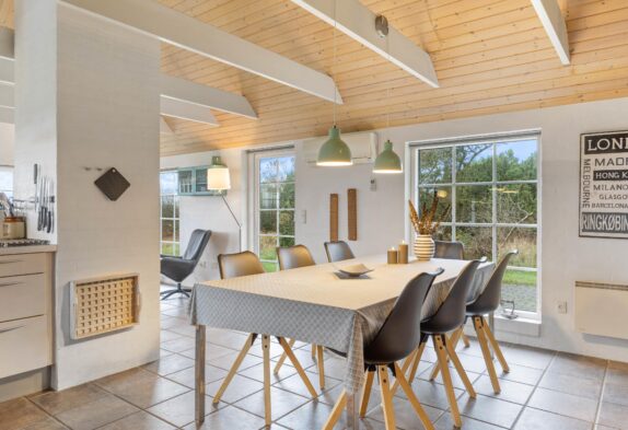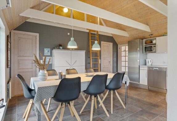 Die Küche liegt im Herzen des Hauses und von hier hat man einen tollen Blick nach Süden und Westen. Geschirrspüler, Mikrowelle und ein 100 Liter Gefrierschrank sind natürlich auch vorhanden. Für Kaffeeliebhaber gibt es in dem Ferienhaus eine normale Filterkaffeemaschine und eine Dolce Gusto Kapselmaschine.