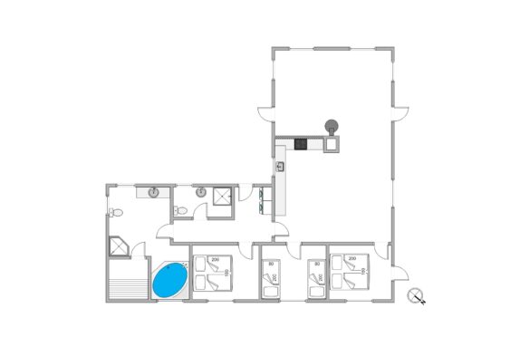 Außerdem gibt es noch einen Hems (Hängeboden) mit 2 Matratzen. Die 2 Badezimmer haben eine Fußbodenheizung und eine Duschkabine. In dem größeren Badezimmer findet Ihr desweiteren einen Standwasserwhirlpool für 4 Personen und eine Sauna vor.
