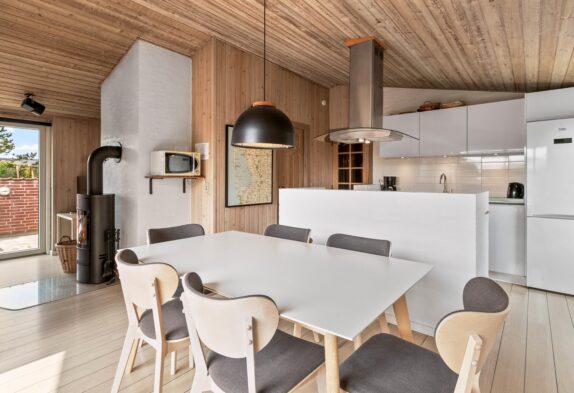 Wenn Ihr dieses Ferienhaus in der F-Saison für 14 Tage bucht, bekommt Ihr 25% Rabatt. Der Holzofen sorgt nicht nur im Winter für eine gemütliche Stimmung, sondern auch für einen niedrigen Stromverbrauch. Entspannt Ihr euch auf dem Sofa nach einem langen Tag in der Natur, schaut Ihr euch einen Film an oder bleibt Ihr in Kontakt mit eueren Freunden zu Hause über den drahtlosen Internetzugang. Das Haus ist auch mit Chromecast ausgestattet.
