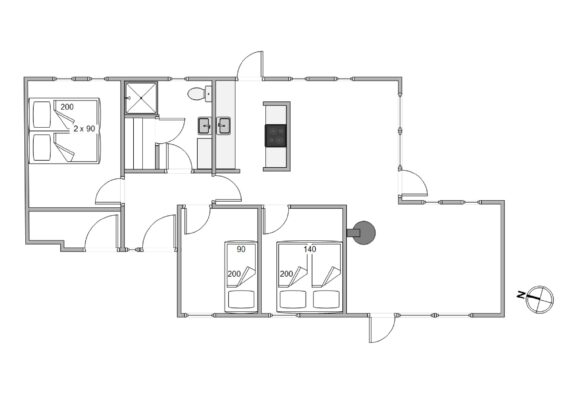 Das Ferienhaus liegt im Fladsbjergvej in Klegod auf einem leicht bewachsenen und hügeligen Dünengrundstück. Es gibt 3 Schlafzimmer, 2 mit Doppelbetten und in dem letzten findet Ihr ein Etagenbett vor. Im Badezimmer ist Fußbodenheizung, eine Duschkabine und ein Zugang zur Sauna vorhanden. In der Küche steht ein 40 Liter Gefrierschrank, eine Mikrowelle und ein Geschirrspüler zur Verfügung. Der Ess- und der Wohnbereich sind offen miteinander verbunden.