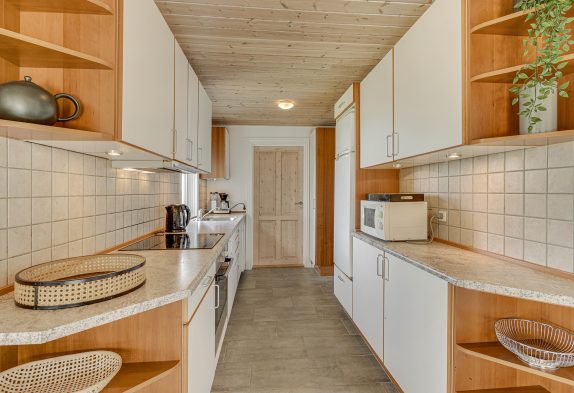 Direkt anliegend am Wohnraum befindet sich die Küche des Ferienhauses. Genießt das frischzubereitete Abendessen am Esstisch und überlasst der Geschirrspülmaschine als eurem praktischen Haushaltshelfer den Abwasch.